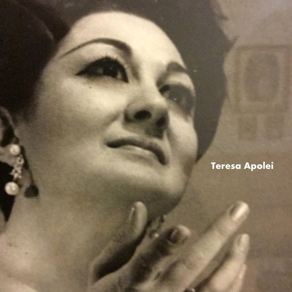 mme. Apolei live in Phila at the Academy of Music in CAVALLERIA. It was part of a double bill with a world premiere opera JERICHO ROAD by Pietro Aria. I will never forget Teresa’s Santuzza! Magnificent! Right up there with Bruna-Rasa and Callas. Please convey to her my best wishes and a big thank you!